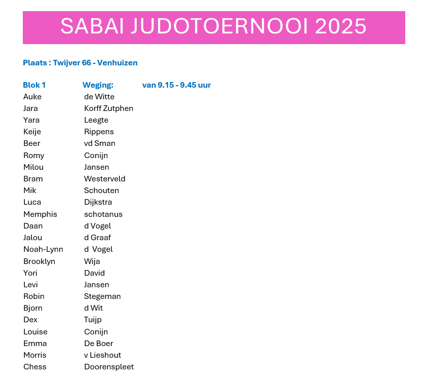 9 november 2025 – Sabai Judo ToernooiPlaats : Twijver 66 – Venhuizen