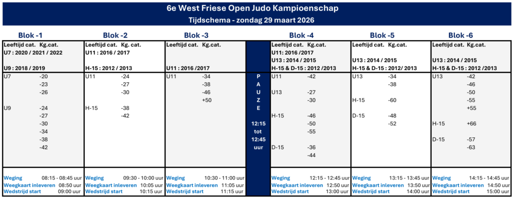 29 maart 2026 – West Friese Open Judo Kampioenschap